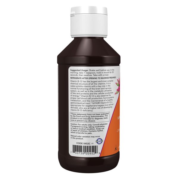 B12-vítamínvökvi sem inniheldur þrjár gerðir af B12-vítamíni; cyanacobalamin, methylcobalamin og dibencozide, auk fólínsýru. B12 er mikilvægt vítamín, sérstaklega fyrir þau sem takmarka neyslu dýraafurða, t.d. vegan og grænmetisætur. B12-vítamín stuðlar m.a. að eðlilegri starfsemi taugakerfisins, eðlilegri sálfræðilegri starfsemi, eðlilegri myndun rauðra blóðkorna og eðlilegri starfsemi ónæmiskerfisins. B12-vítamín stuðlar einnig að því að draga úr þreytu. Bragðgott og sykurlaust, sætt með xylitol og stevíu. Vegan. 118 ml.