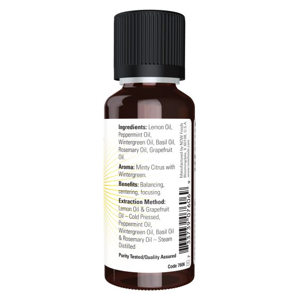 Blanda af lemon, peppermint, wintergreen, basil, rosemary og grapefruit olíu. Ilmur: myntu og sítrus. Ávinningur: jafnvægi, einbeiting