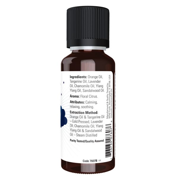 Blanda af orange, tangerine, lavender, chamomile, ylang, ylang og sandalwool olíu. Ilmur: blóma, sítrus. Ávinningur: róandi